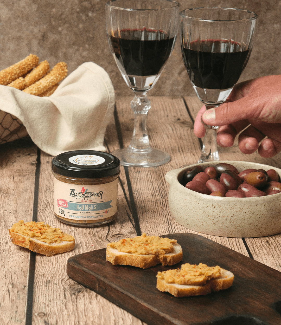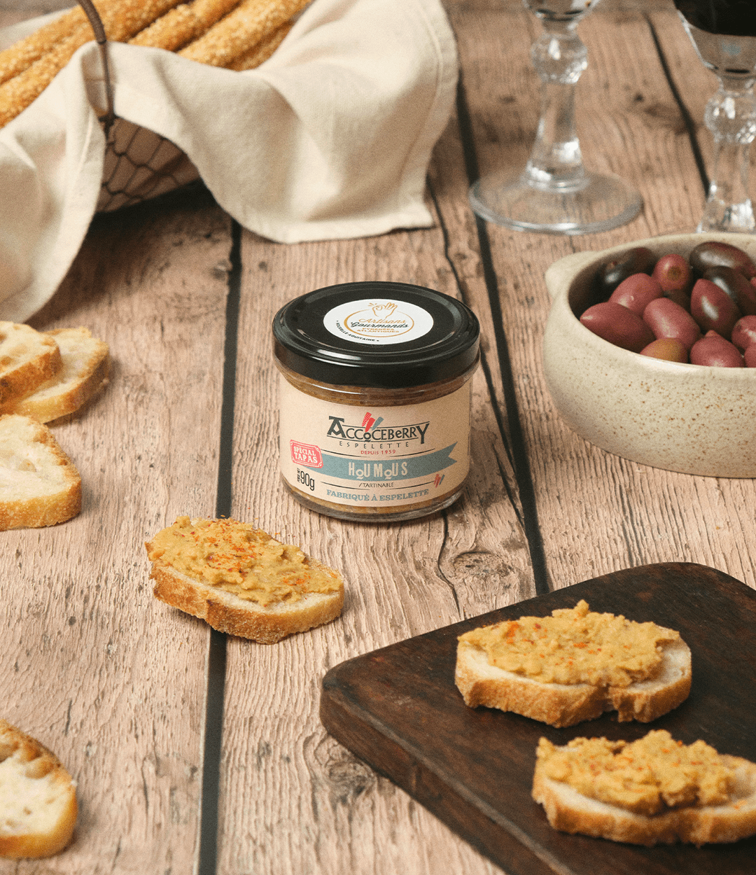 Plongez dans une alliance inédite entre Orient et Pays basque avec notre houmous au piment d’Espelette, une création originale signée Accoceberry.