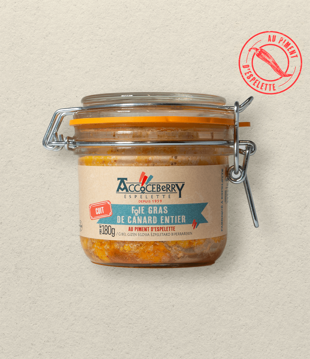 La Maison Accoceberry sélectionne avec rigueur les meilleurs foies pour créer ce met d’exception, préparé selon un savoir-faire traditionnel à Espelette. Sa texture fondante et son goût subtil évoluent avec le temps, offrant une dégustation toujours plus savoureuse.